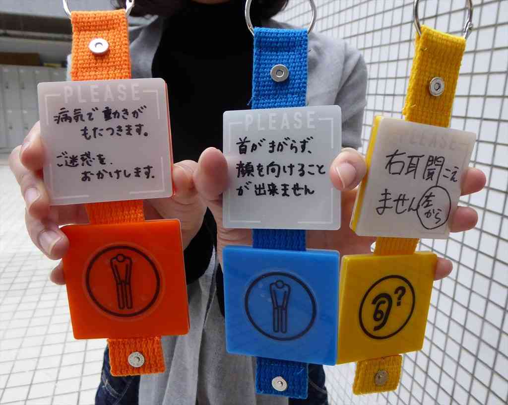 もっと分かりやすいと言うか、HELPと英語で書いてあるとか、私、持病がありますとかにした方がいいような気がします。