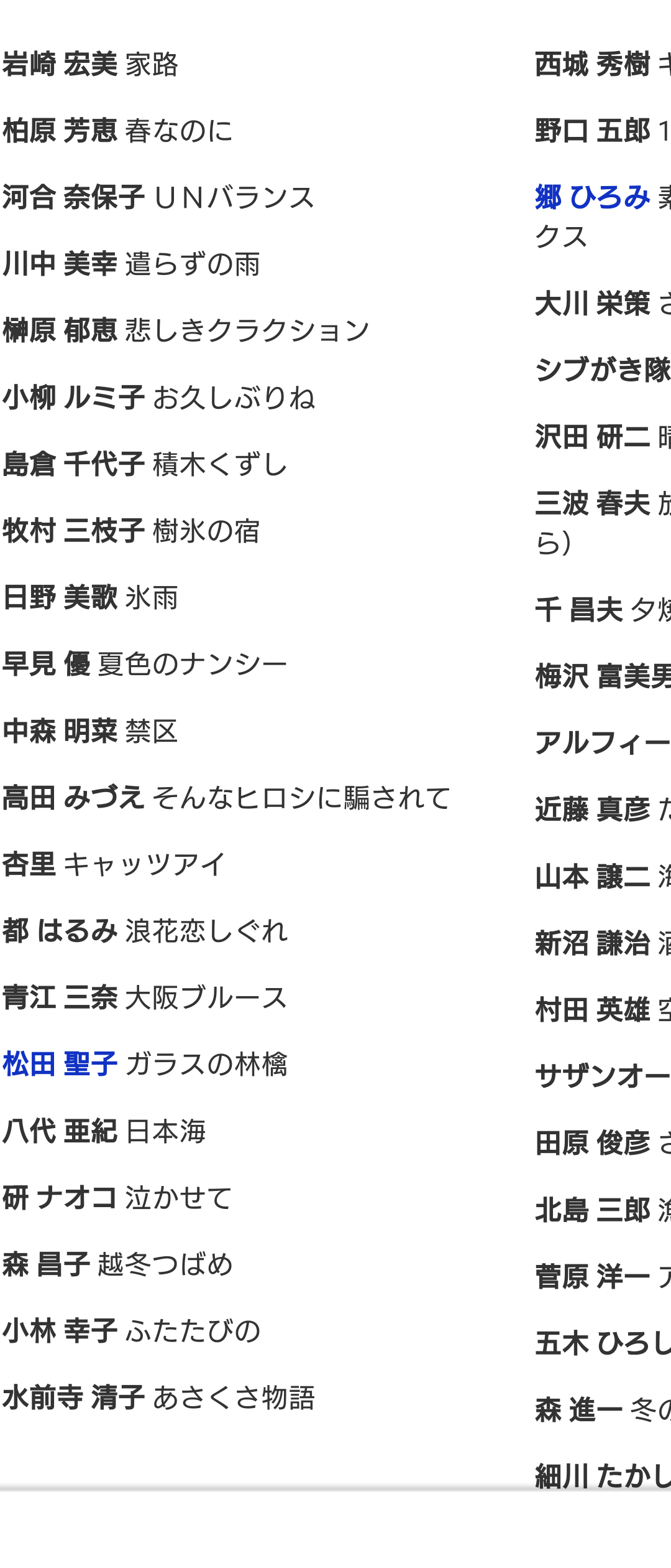 中尾ミエ、伊東ゆかりたちに。