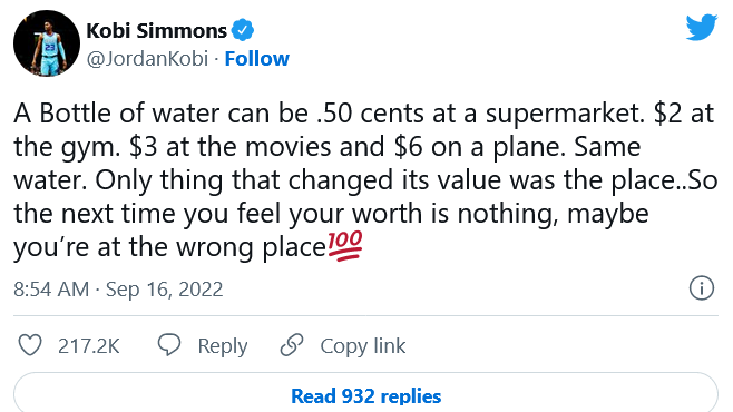 自分の価値はいったいどれくらいあるのでしょうか。 ときには自信を喪失し、自分の価値に疑問を感じることだってあることでしょう。 そんなときのシンプルなアドバイスが、Twitterで人気を集めていました。