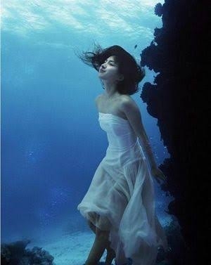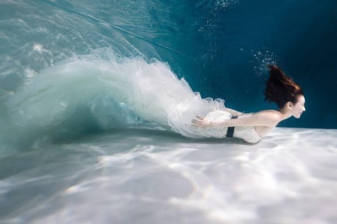 私も水中、下からのアングルで写した人魚のシルエットのような幻想的な写真を想像した。