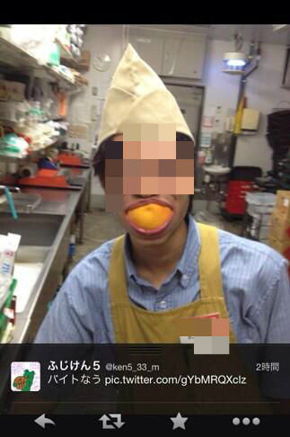 バイトがグレープフルーツくわえドヤ顔、またツイッターに投稿(スポーツ報知) - 国内 - livedoor ニュースnews.livedoor.comスーパーマーケットの東急ストアは31日までに、戸塚店(横浜市)の大学生アルバイト従業員がインターネット上で不適切な画像を公開したとして、謝罪した。 問題の画像は、従業員が廃棄処分品とみられるグレープフルーツを口に含んでドヤ顔を決めているもの。ツイッターにアップされ「バイトなう」との文言も添えられていた。東急ストア側は「詳しい調査が終わり次第、問題の従業員には解雇を含めた厳正な処分・対応を行うとともに、今後このような事態が発生しないよう取り組みたい」としている。