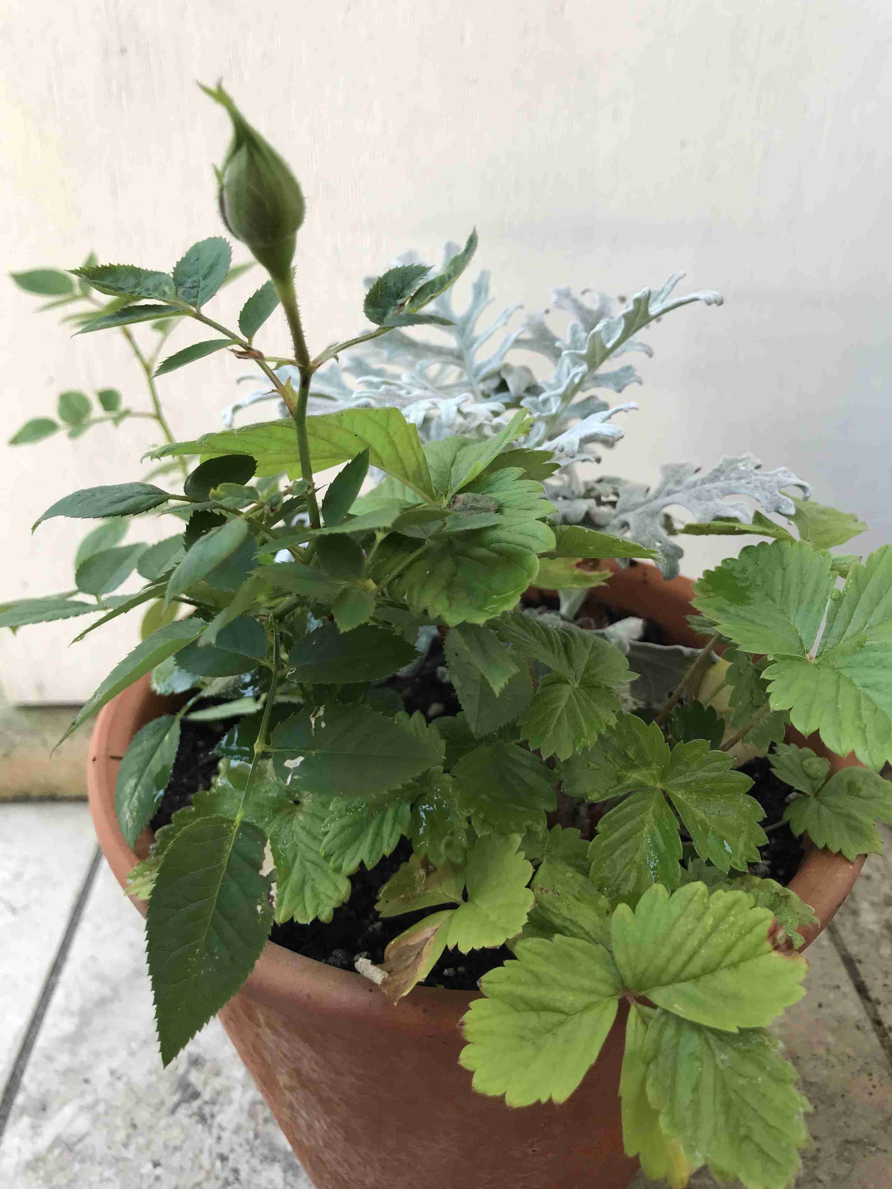 徒長してでろんでろんですが、手前の柳葉柊南天が支えてくれてなんとか見られる感じになっています+13