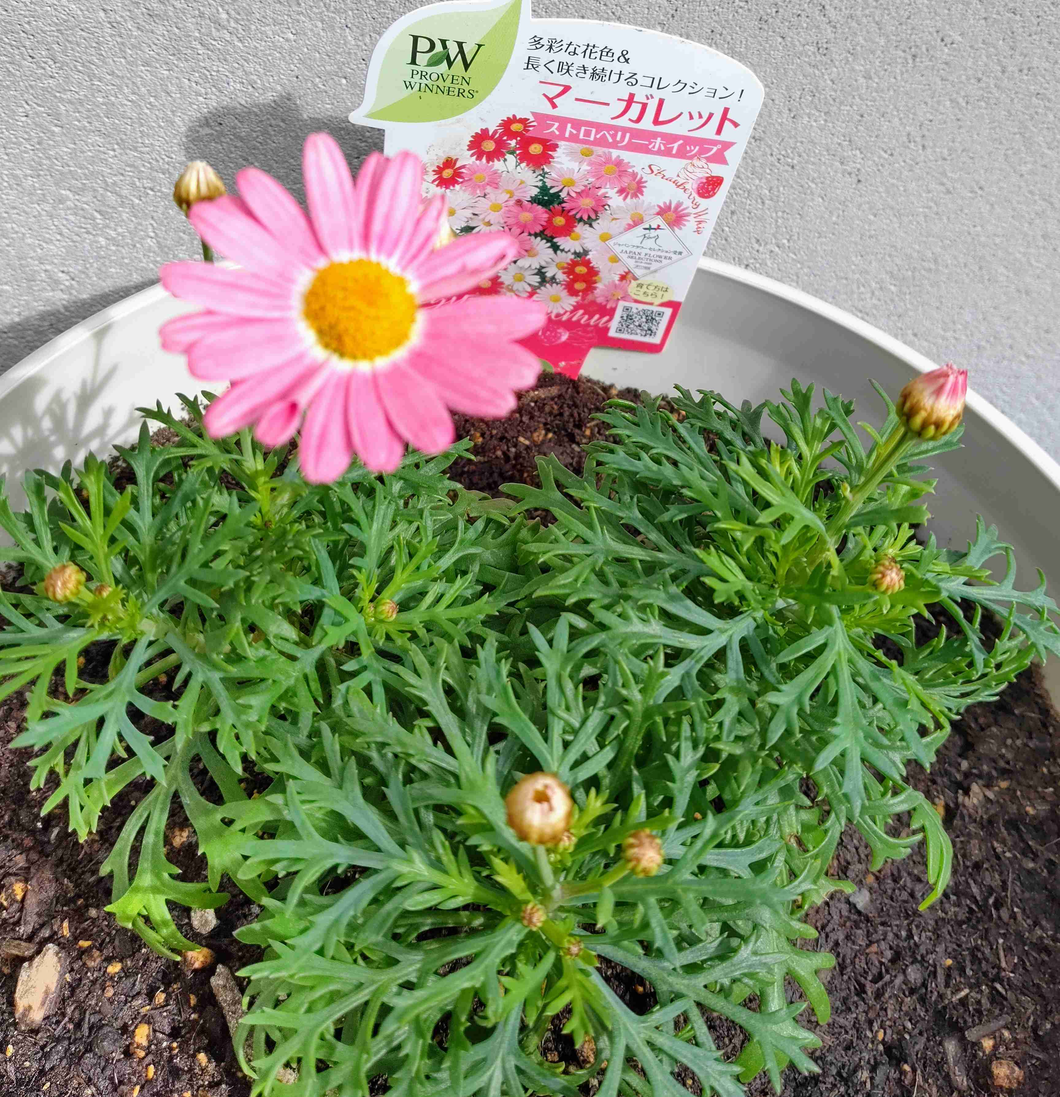 なんのお花ですか?って聞いても「それが忘れたのよー、でもピンクの可愛い花が咲くから!」だって花が咲くのが楽しみだ