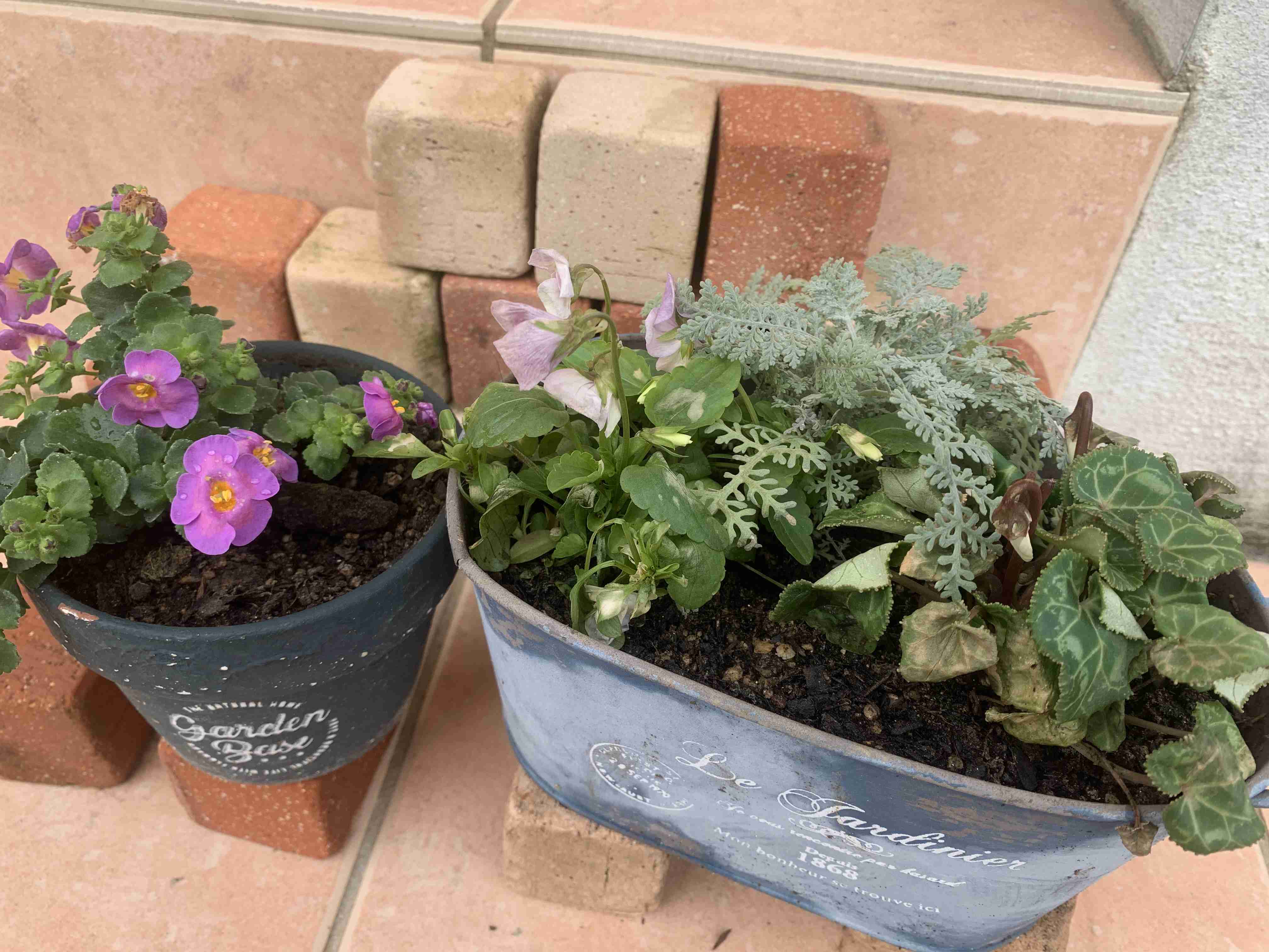 真ん中のパンジー、もしかしたらお揃いかも?