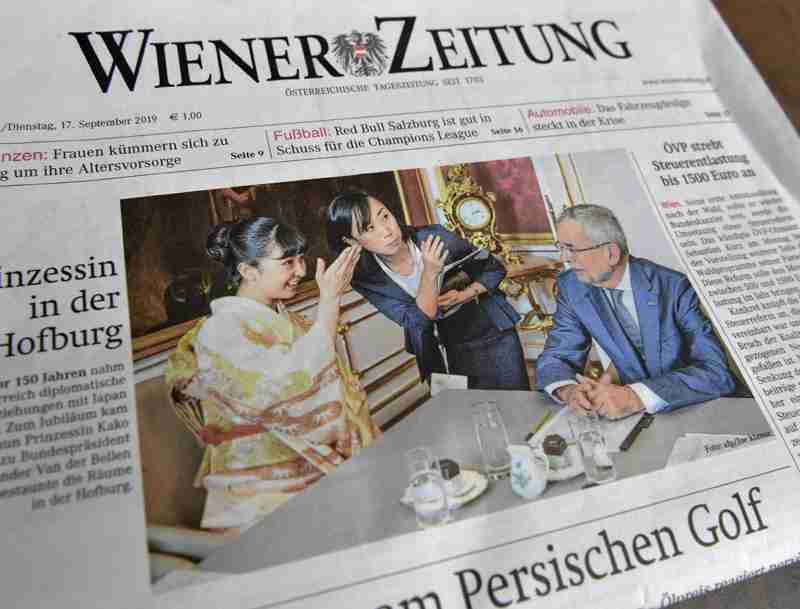 後ろの緑とベージュのくたくたのカーテンも宮内庁に用意して貰えば良かったのに。