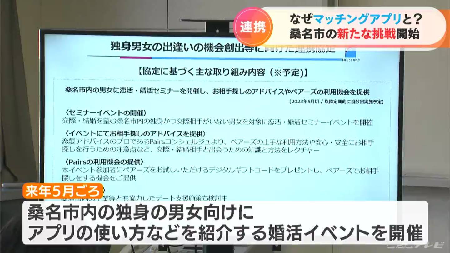 「出会い系サイトの時代と意識が変わっていない人もいるので、そういう人たちに対しても、桑名市が一緒に取り組んでいくことで、若い世代を中心に出会いを支援する」