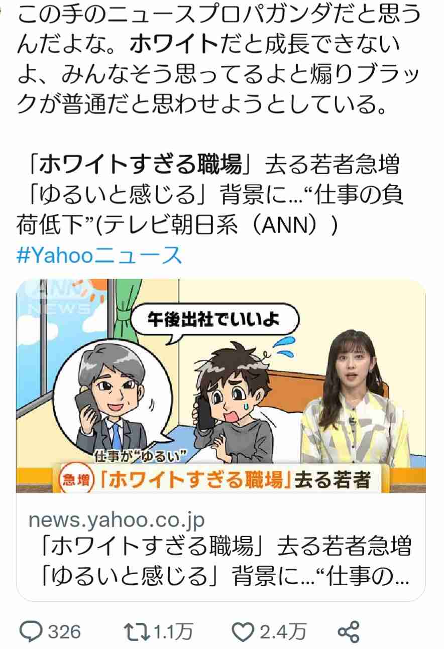 一体どのような職場がホワイトなのかがわからない…。日本そのものが既にブラックだし、ホワイト企業って都市伝説か何か?存在しない気がする。+0