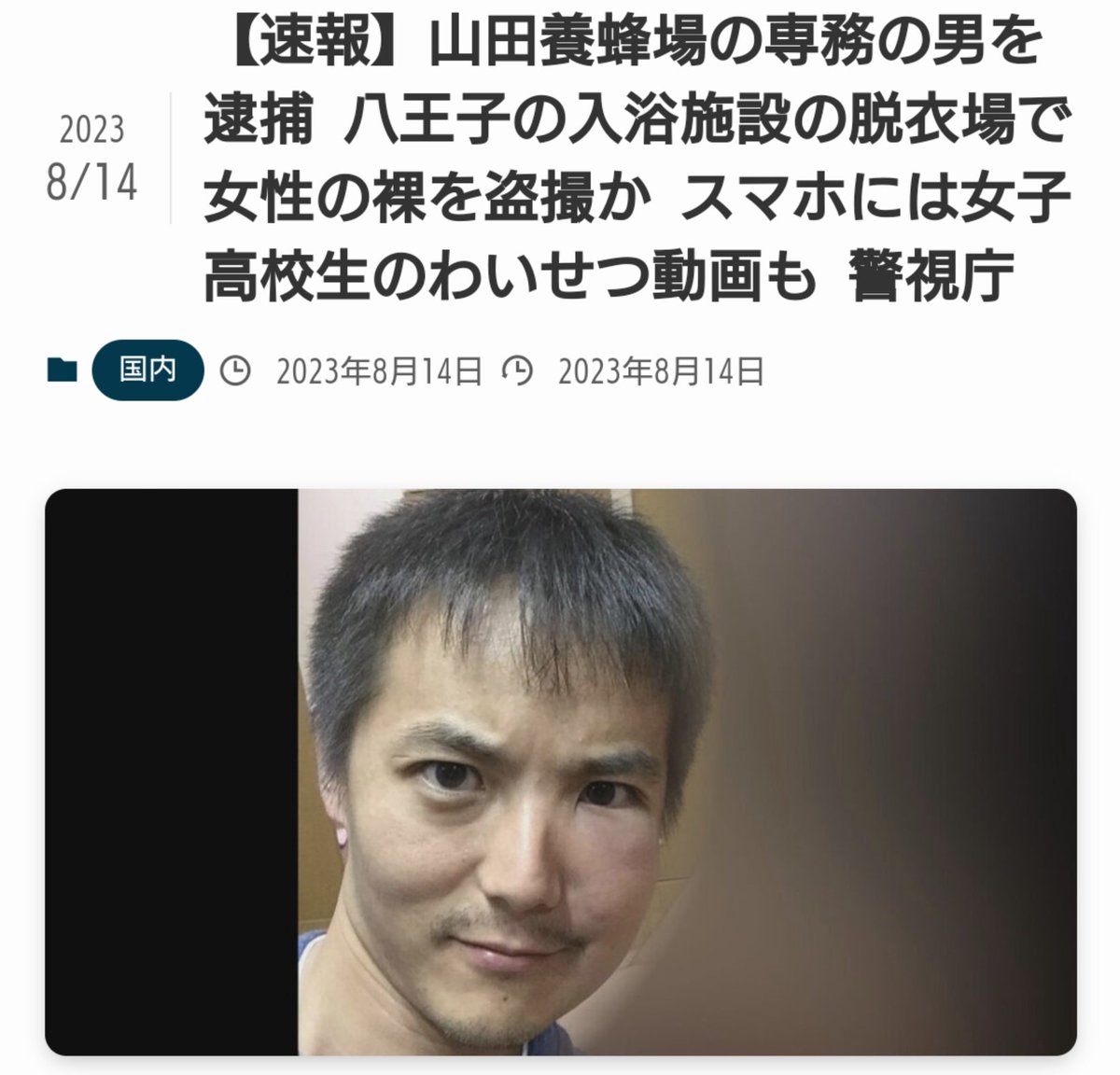 ググると色々出てくるな![山田養蜂場役員を逮捕 女性脱衣所で盗撮指示疑い―警視庁]()
