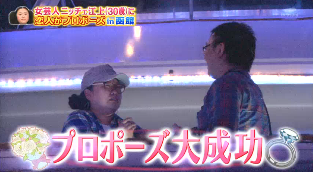 ニッチェ江上敬子、9歳上男性と電撃婚約!「ロンハー」でプロポーズgirlschannel.netお笑いコンビ、ニッチェのボケ担当、江上(えのうえ)敬子(30)が、39歳の男性と交際10カ月で電撃婚約したことが27日、分かった。30日放送のテレビ朝日系バラエティー「ロンドンハーツ3時間スペシャル」(後7・0)で、ひそかに真剣交際していた恋人からサプライズでプロポーズされた。