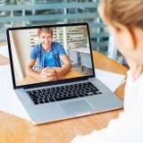 ![オンラインで英会話レッスンしてる人]()