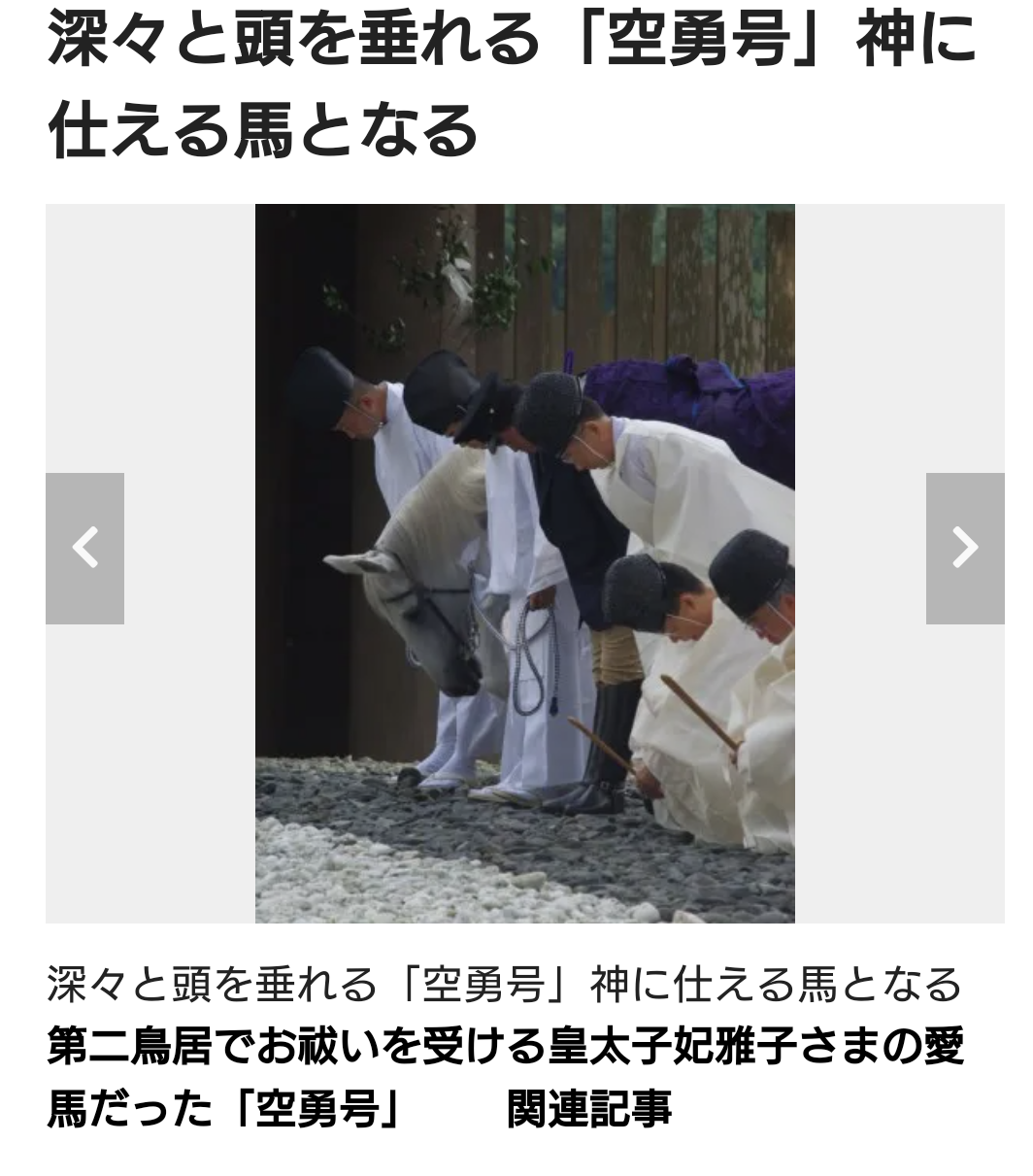天皇陛下の代わりを務める馬だったんだ。「敬宮様にも人参をもらって頼まれたもんね!」と元気に勤めて欲しいわ。+107