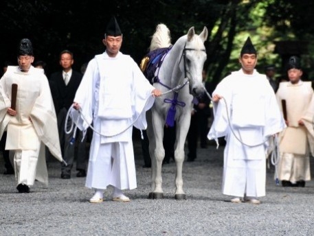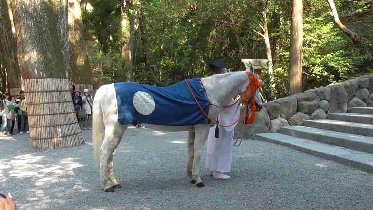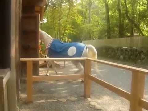 神馬は毎月1日・11日・21日の早朝8時ごろ、天皇陛下に代わって神前に見参する。