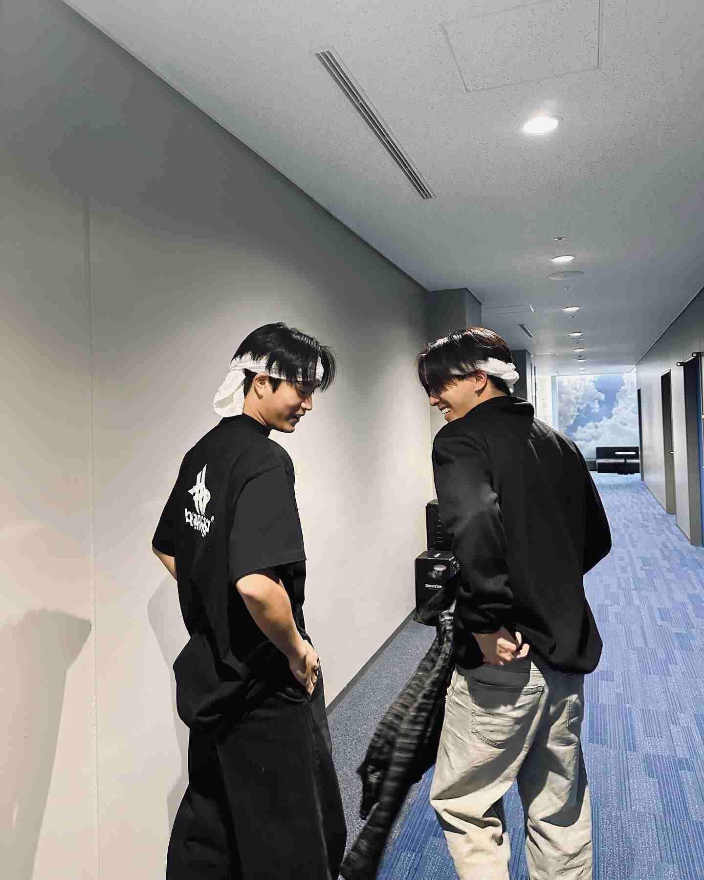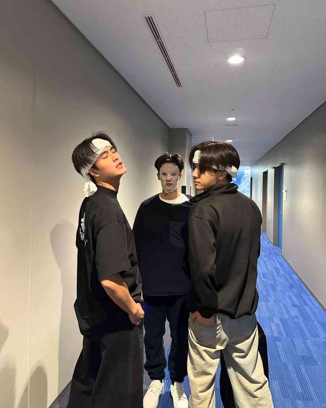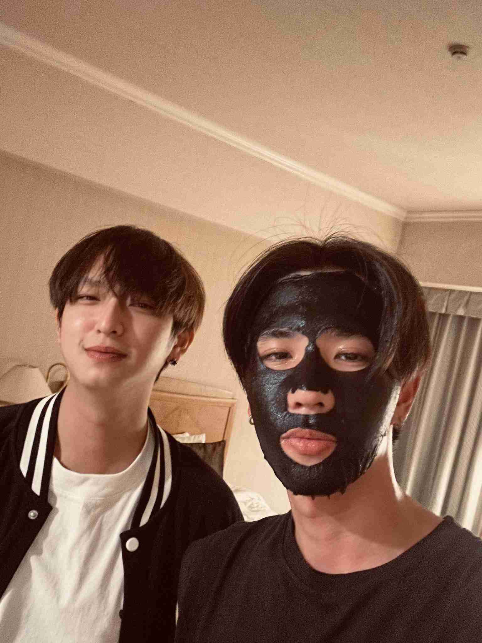 タオルはちまきのじぇみないとパースそこにフェイスパック中のテー😂 このメンバーでコラボレーションするの?+40