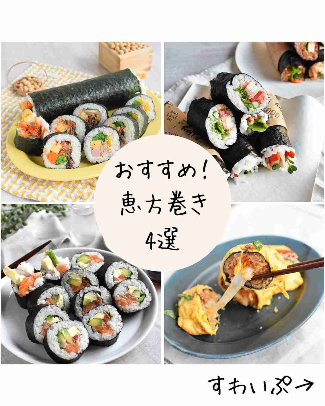 節分に食べる物といえば「恵方巻」。決まった方角を向いて食べる、黙って食べきるなど食べ方に決まりが多いことで知られています。