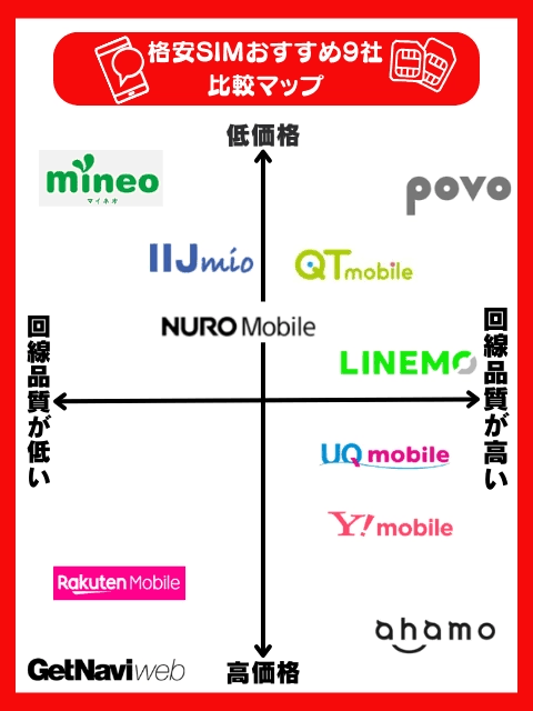 マイネオ安そうだし替えようかな?と思ったら、マイネオとahamoこの表の対局にいてちょっと笑ってしまった。