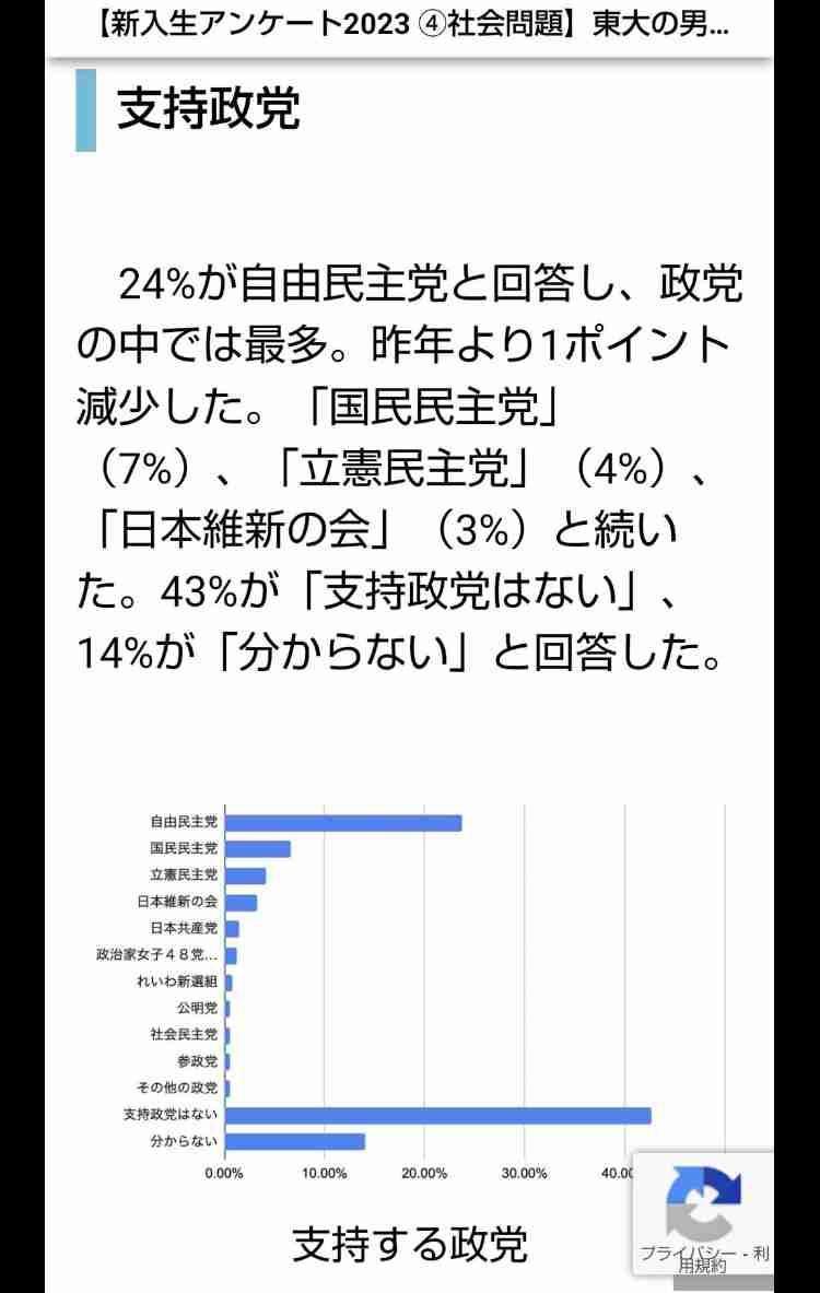 統一教会のことが知られた今でも東大生が支持する政党は圧倒的に自民党だけど+0