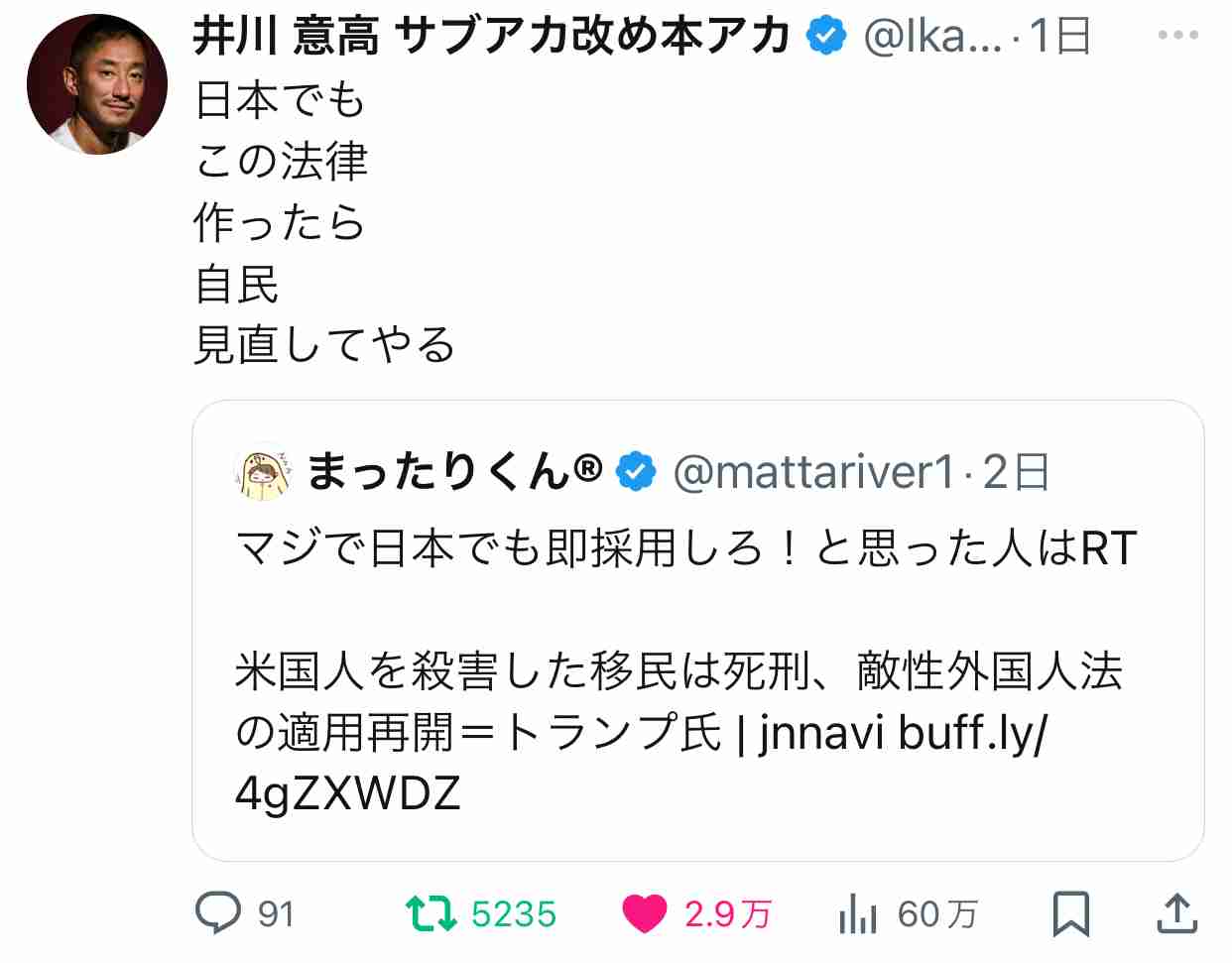 自身が視聴した選挙ライブ番組の内容について「どんな層がトランプさんを支持しているのかを表すパネルが出ていましたけどその中で高卒の人がトランプ支持者には多いっていう項目がありました(中略)学歴がないからトランプみたいな詐欺師を支持してしまう、的な含みのある言葉」と、そのコメンテーターの発言を意訳した上で、「でもそもそもそのような人を増やしたのも過去の政治であるわけで 取り残されてしまった人達の気持ちや生活をなおざりにした結果の結果であるから 何を言ってるのだ?って感じです」と異を唱えた。+1067