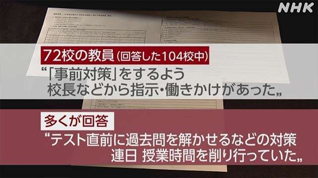 都道府県によっては、学校でテスト前に授業とは別にテスト対策の勉強をしなくてはいけなくて、先生たちがすごく大変な事になっている、という記事を見た事がある。