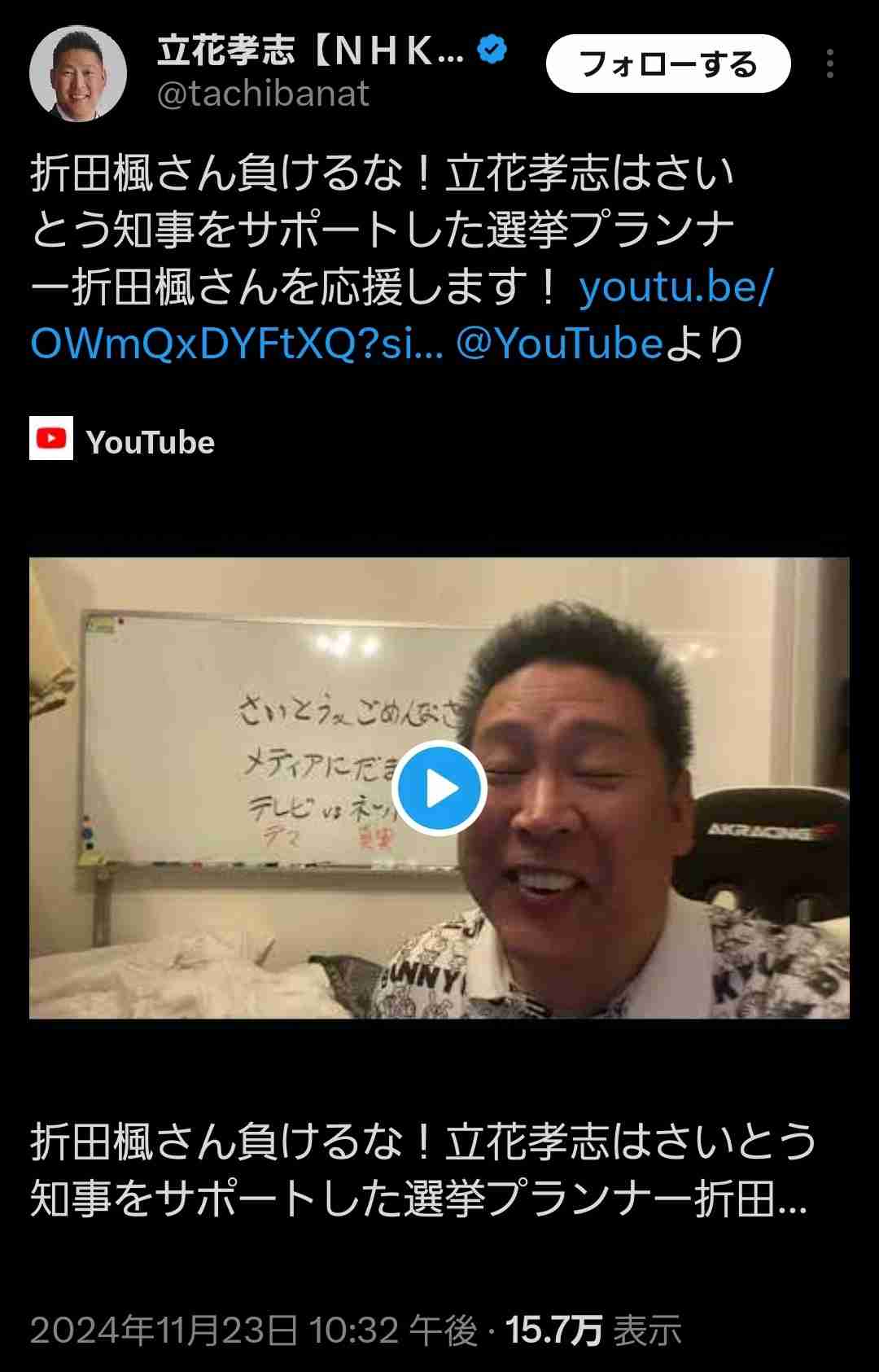 これ、最後に立花氏は、嘘です、て