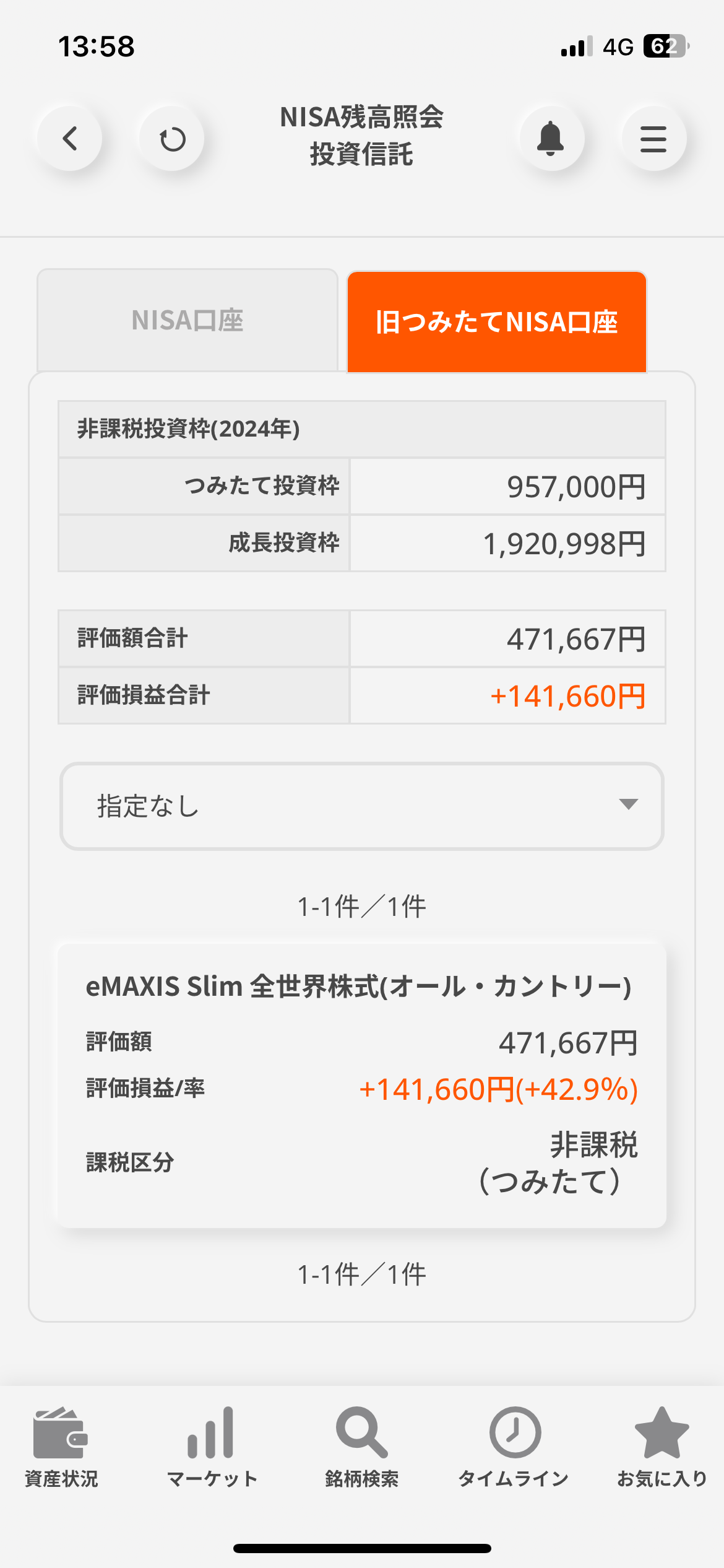 新ニーサを毎月クレカ積立してるけど全然みてない…+48