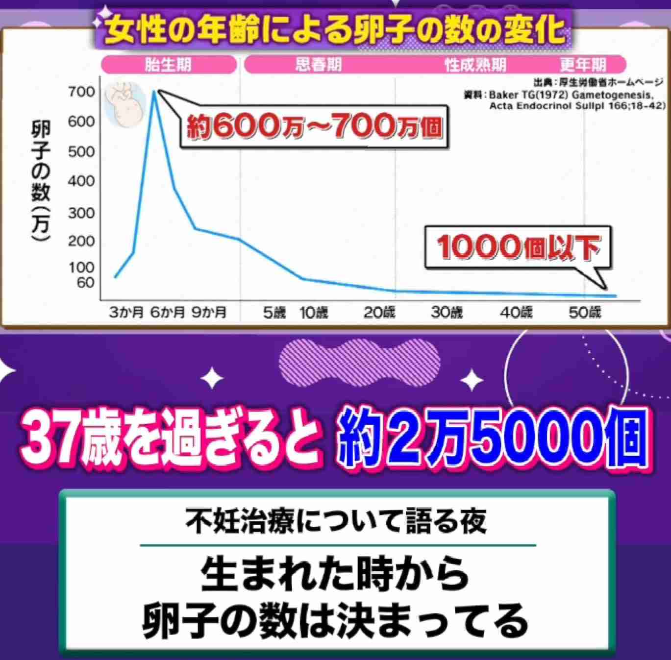 卵子の数は加速度的に減る。