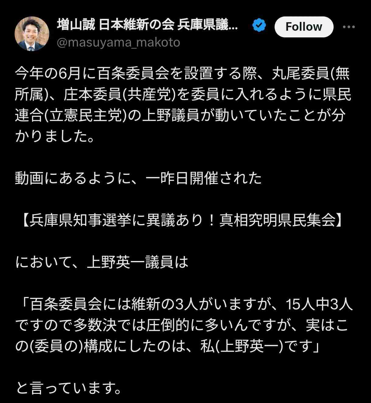 なんで百条委やめずに言わなかったの?