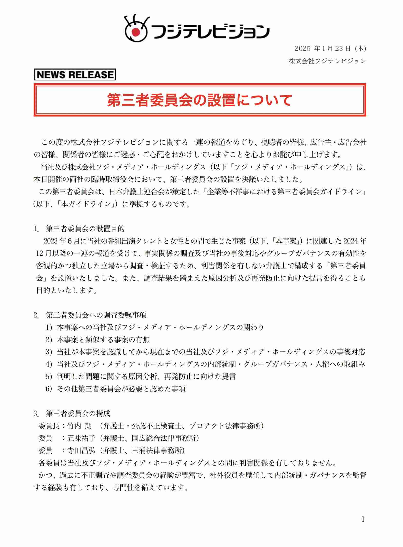 >>1 第三者委員会の調査報告書は3月末に公表予定だそうです。