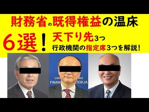 >>1財務省の既得権益(天下り先&独占ポジション)の温床6選www.youtube.com財務官僚の天下り先と完全に指定席となっている行政機関のポジションをまとめました。 とりあえず今後「脱税疑惑があった議員または候補者は財務省にとって都合が悪い人物ですので、つまり国民の味方です!!!」 目次 0:00 オープニング 0:14 ①OECD事務次長 1:14 O...