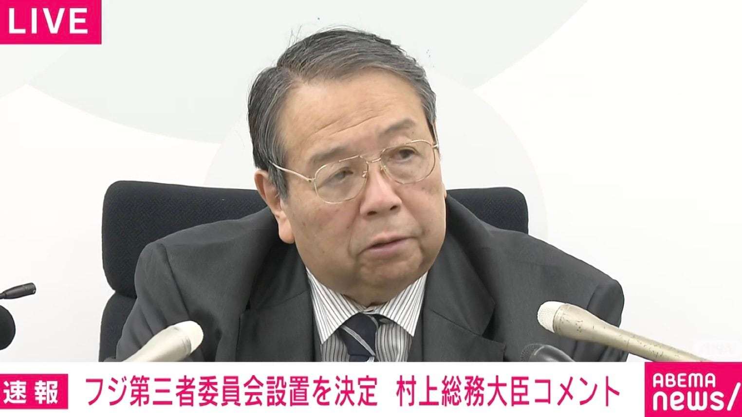 村上総務大臣「天下りという事実はない」「総務省職員の再就職については、フジテレビが自らの判断で採用した」 フジ第三者委員会設置の決定を受けコメント