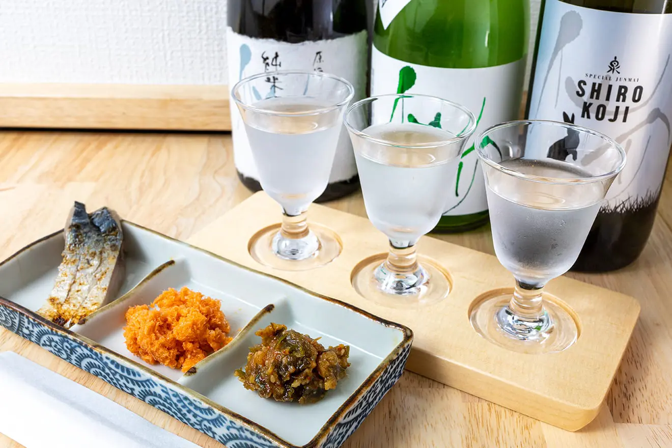 大体の好み(すっきり系とか甘めとか)を伝えると、店主さんが3種類セレクトしてくれる利き酒がメニューにあるところに行ってみたらどうかな