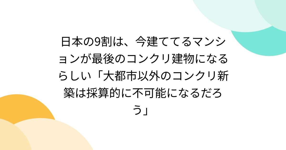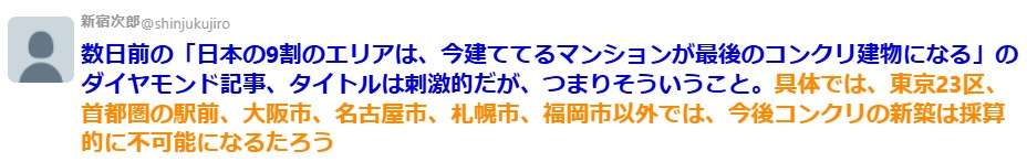 「日本の9割のエリアは、今建っているマンションが最後のコンクリートの建物になるんじゃない?」【不動産インサイダー座談会3】 | 不動産業界インサイダー地下座談会 | ダイヤモンド・オンラインdiamond.jp全宅ツイによる2025年不動産インサイダー座談会、3回目は建設費の高騰によりマンション・ビルの開発が中止になっている問題を取り上げよう。