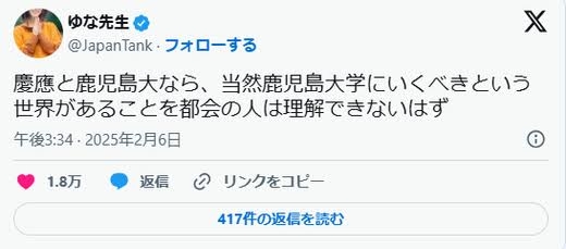 地方は医学部とか旧帝大が地域枠で守られてるから羨ましい