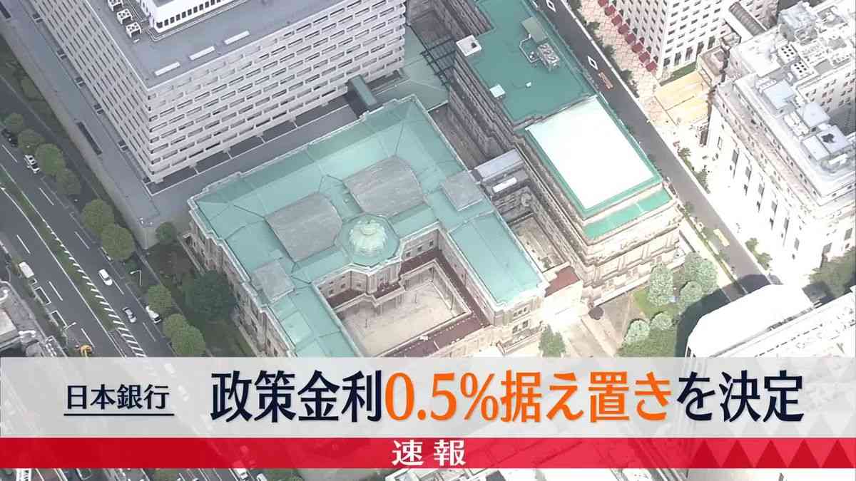 日本銀行は18日・19日に行った金融政策決定会合で、政策金利を現在の0.5%程度に据え置く“政策維持”を、全会一致で決めました。