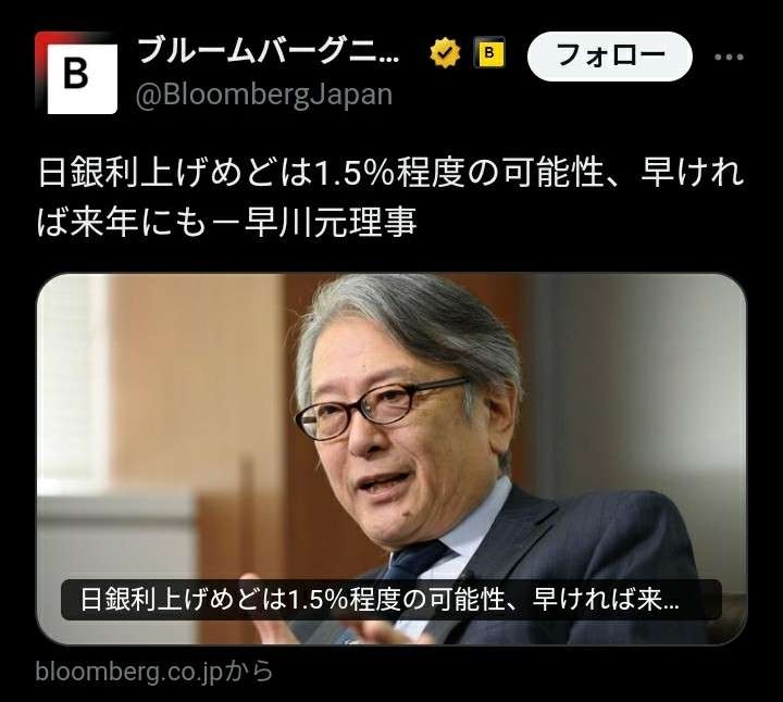 元日銀理事の早川氏は「2026年までに1.5%まで上げる」とコメント出しているね+8