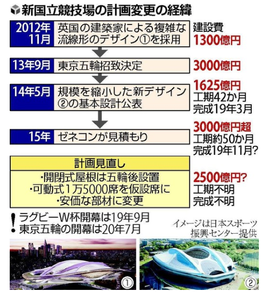 新国立、総工費案1500億円弱/スポーツ/デイリースポーツ onlinewww.daily.co.jp2020年東京五輪・パラリンピックのメーンスタジアムとなる新国立競技場の新たな建設計画で、設計・施工業者を決める日本スポーツ振興センター(JSC)が14日、総工費や工期、外観イメージなどを記載した応募業者の「技術提案書」を公表した。2陣営から応募があり、業者名は非公表で総工費はA案が約1489億円、B案が約1496億円だった。