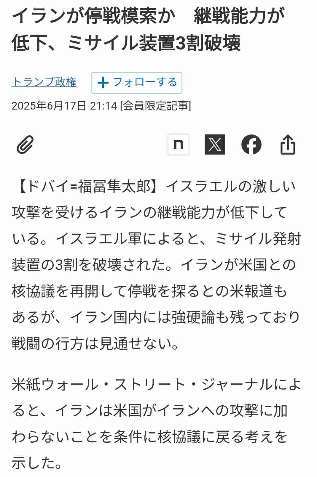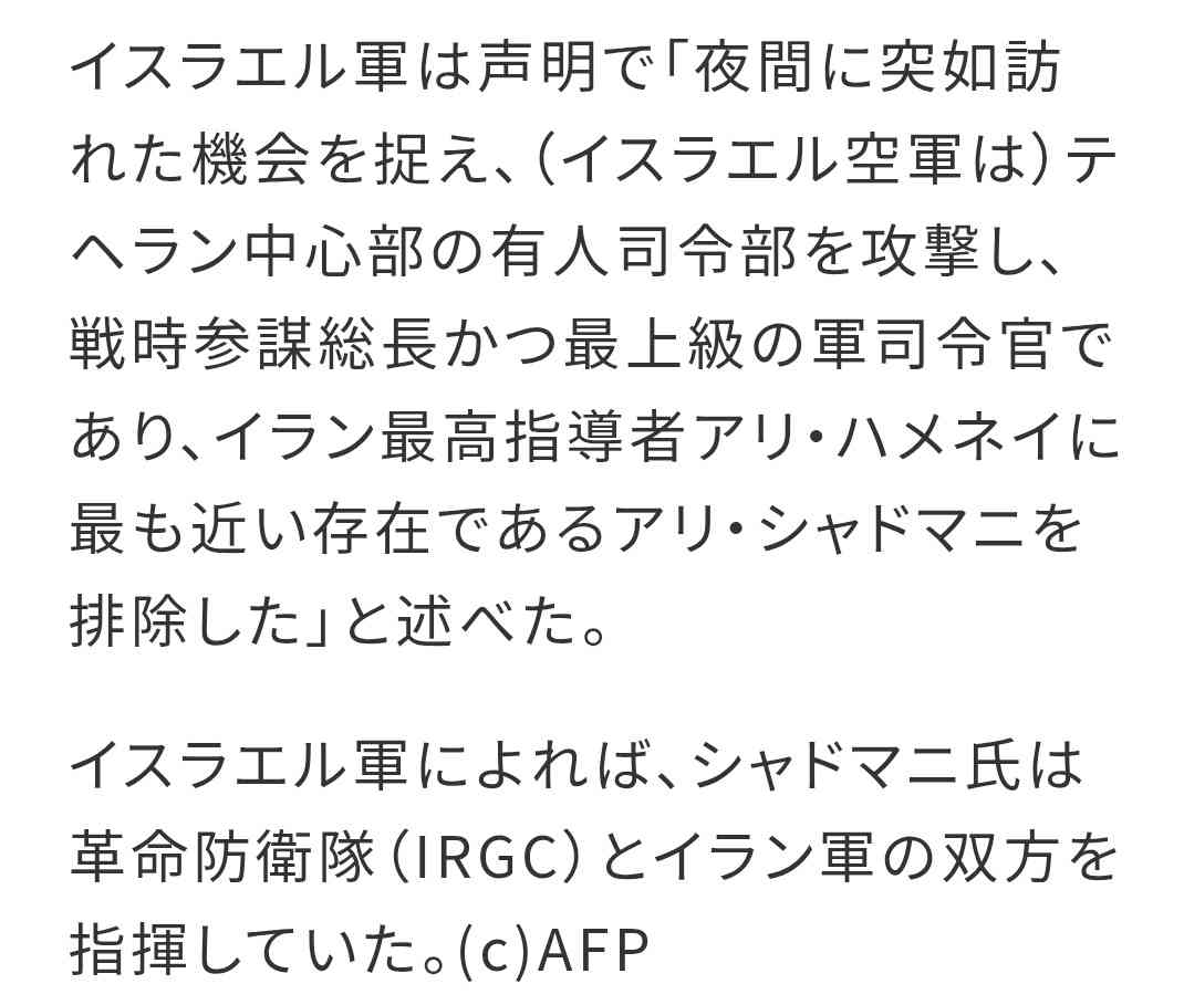 イスラエルには『自国守る権利』」と報じたニュースを引用し、