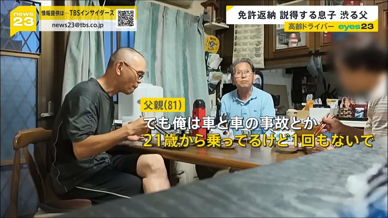 免許返納望む息子vs父親の“家族会議”をモニタリング…「事故しない自信ある」父に息子は「個人の説得ではキリがない」【news23】 | TBS NEWS DIG