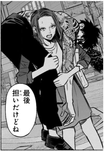 初対面の入れ墨だらけの男を担ぎ上げる女