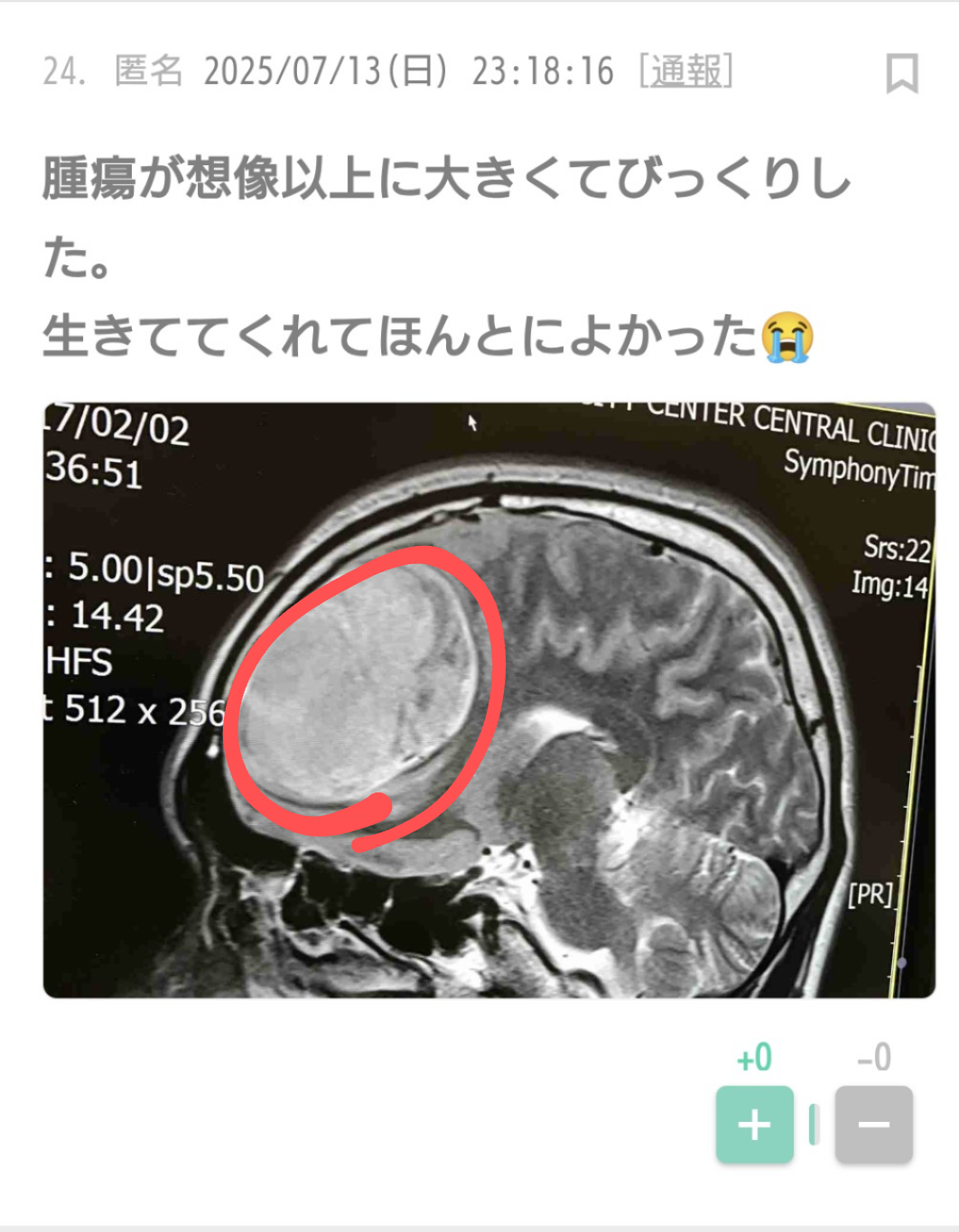 腫瘍が想像以上に大きくてびっくりした。