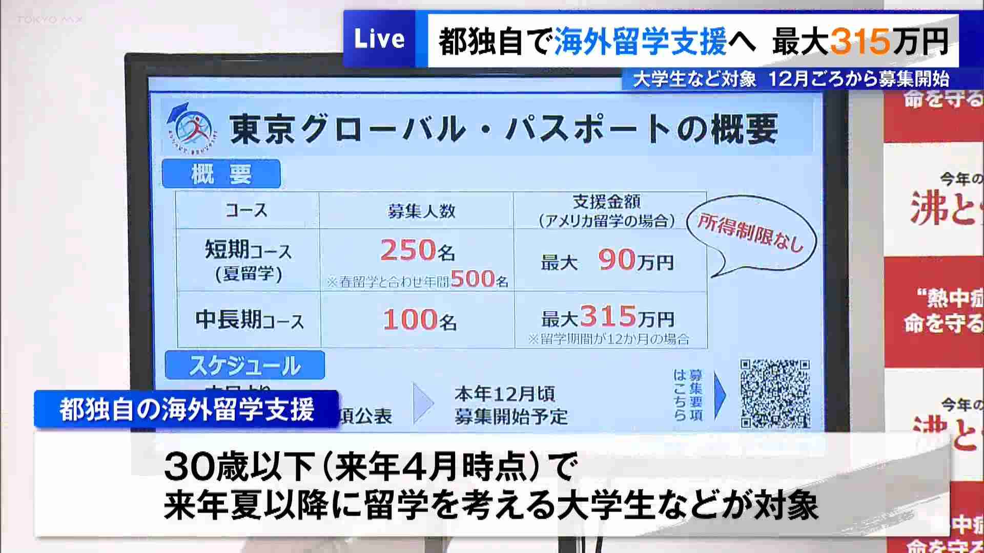 東京都は新たに独自の支援策として、大学生などを対象に最大で315万円の海外留学費用を援助すると発表しました。…