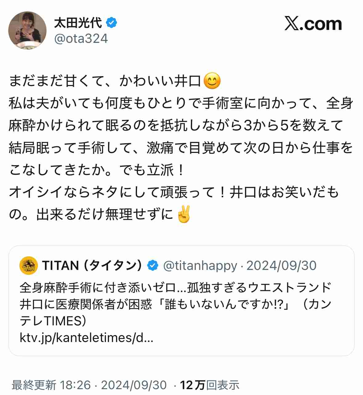 太田さんと社長が離婚しても仕方ないけど(しないと思うけど)独身になった太田さん後妻業にだけは狙われて欲しくない返信