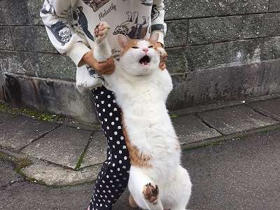抱き上げられた猫も「お前誰?」って感じだった