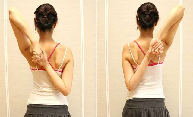 肩を回したり、肩甲骨を動かすストレッチをしたらだんだん届くようになった。+1