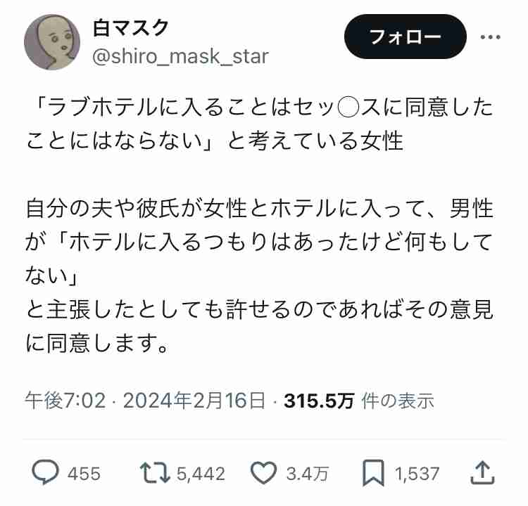まぁホテルに入ってる時点で、やってないわけないわな返信+814