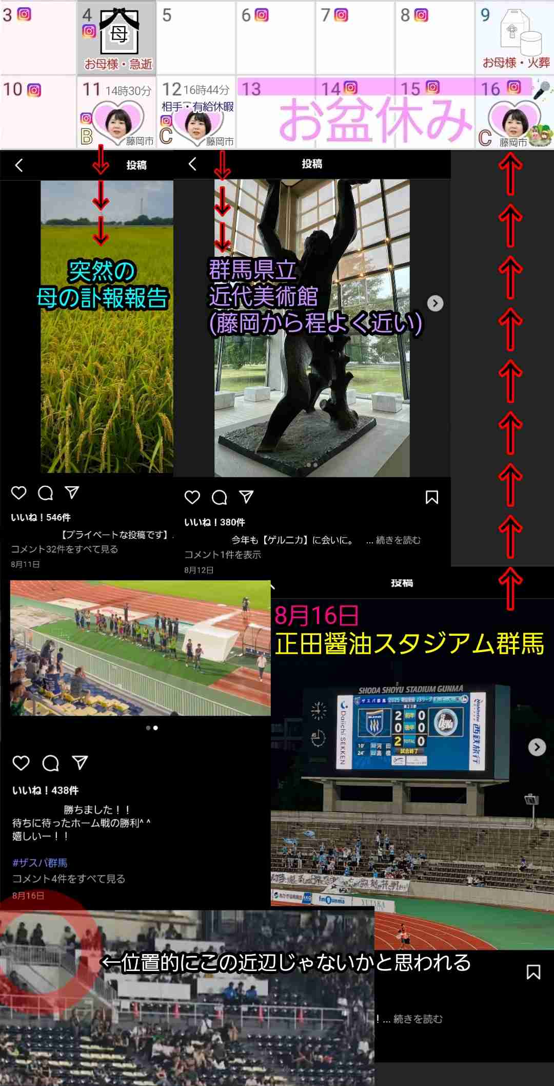 ③どちらかが藤岡に実家があり、お盆で帰省していたために藤岡が都合が良かった(多分相手?)