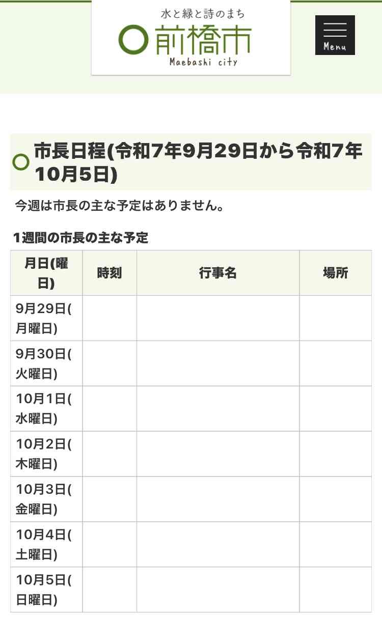 最近はインスタもXも止まったままだし、市長の今週の公務の日程も一週間空白のままですね