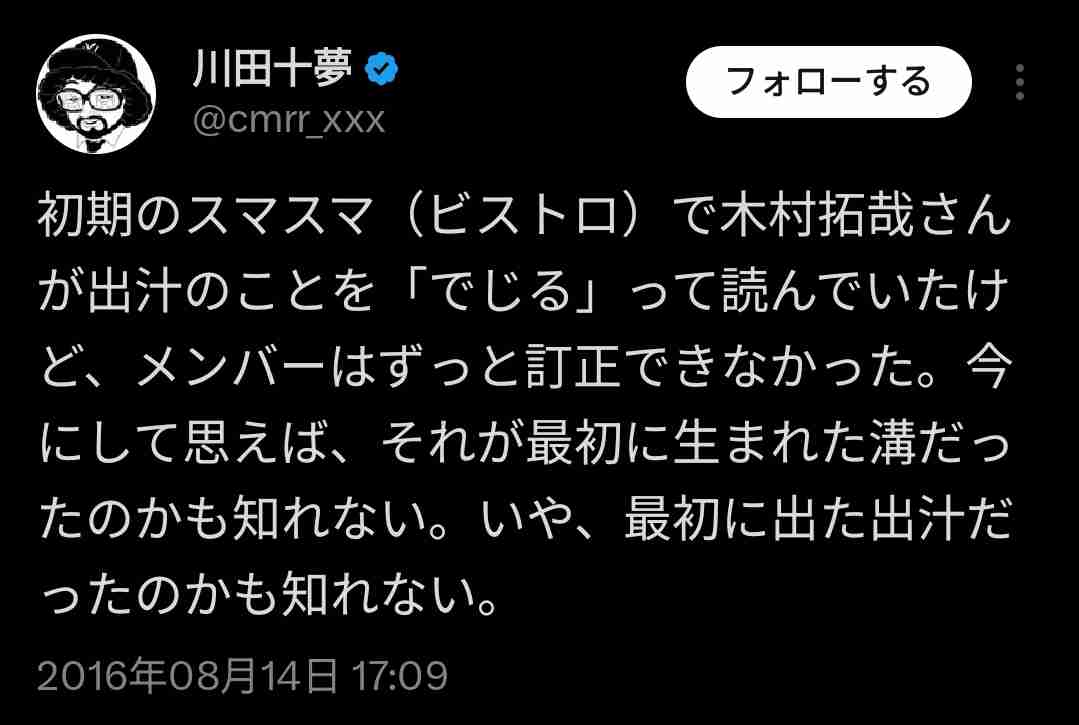似たような話しで私の大好きなゲーム配信者はイケボで結構物知りでキムタクと同じO型のちょっとナルシス気味の王子気質な人間なんだけど、クソ真面目な声でゲームのセリフの居城をイジロと呼ぶのがちょっとゾワゾワする。コメントでキョジョウですねって突っ込まれても本人の耳に届かなく、素で間違えてるのかボケてるのか分からない時ある。