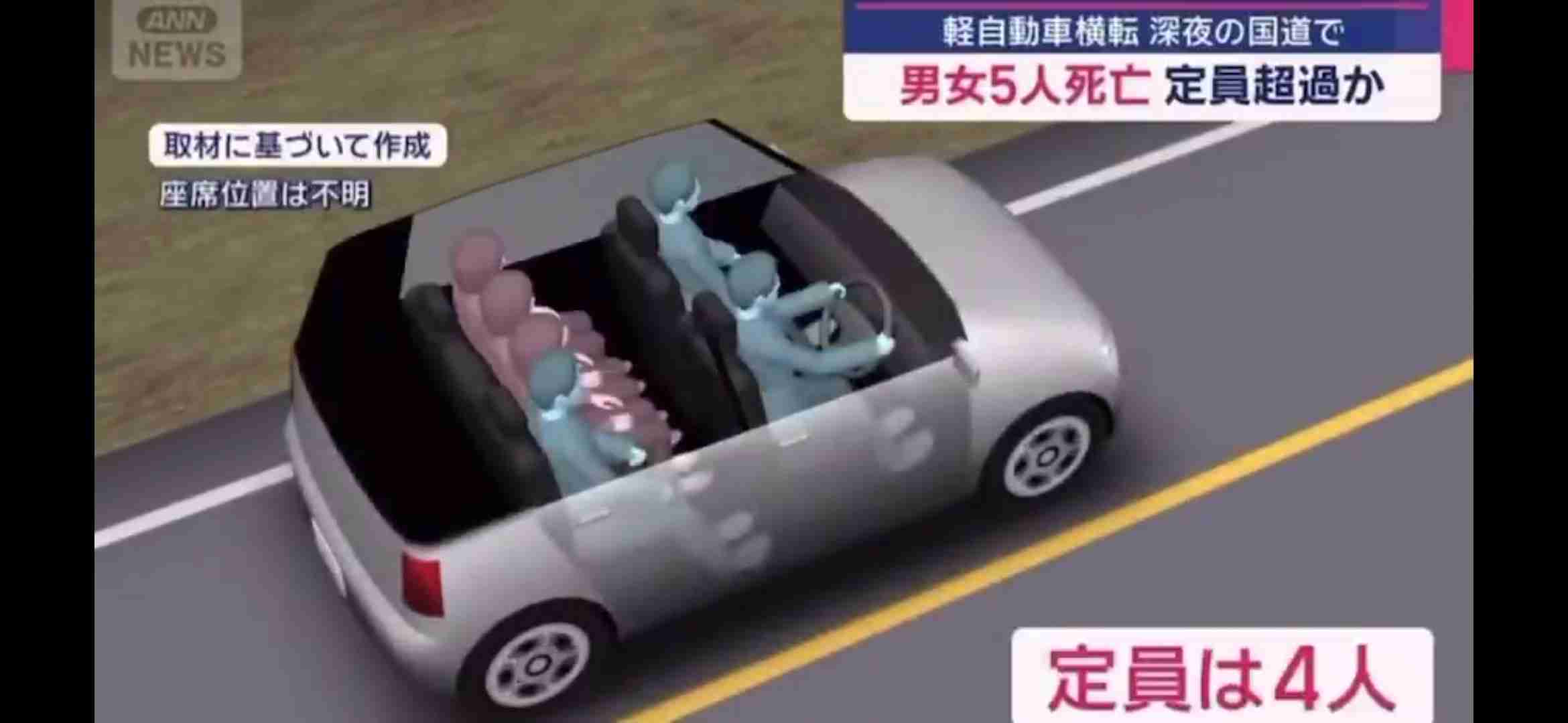 事故を起こした軽乗用車の定員は4人。後部座席でもシートベルトを装着していなかったとみられる。