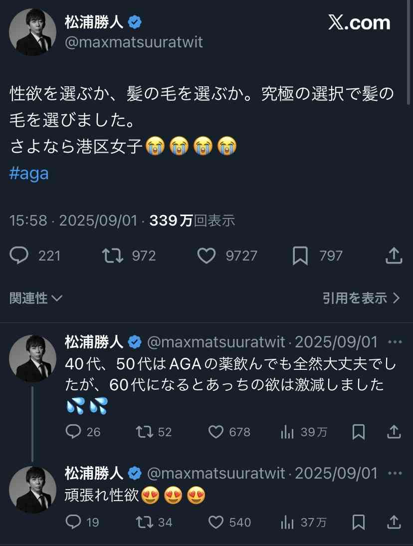 世界最高峰の男性も薄毛は怖いんだ返信+216