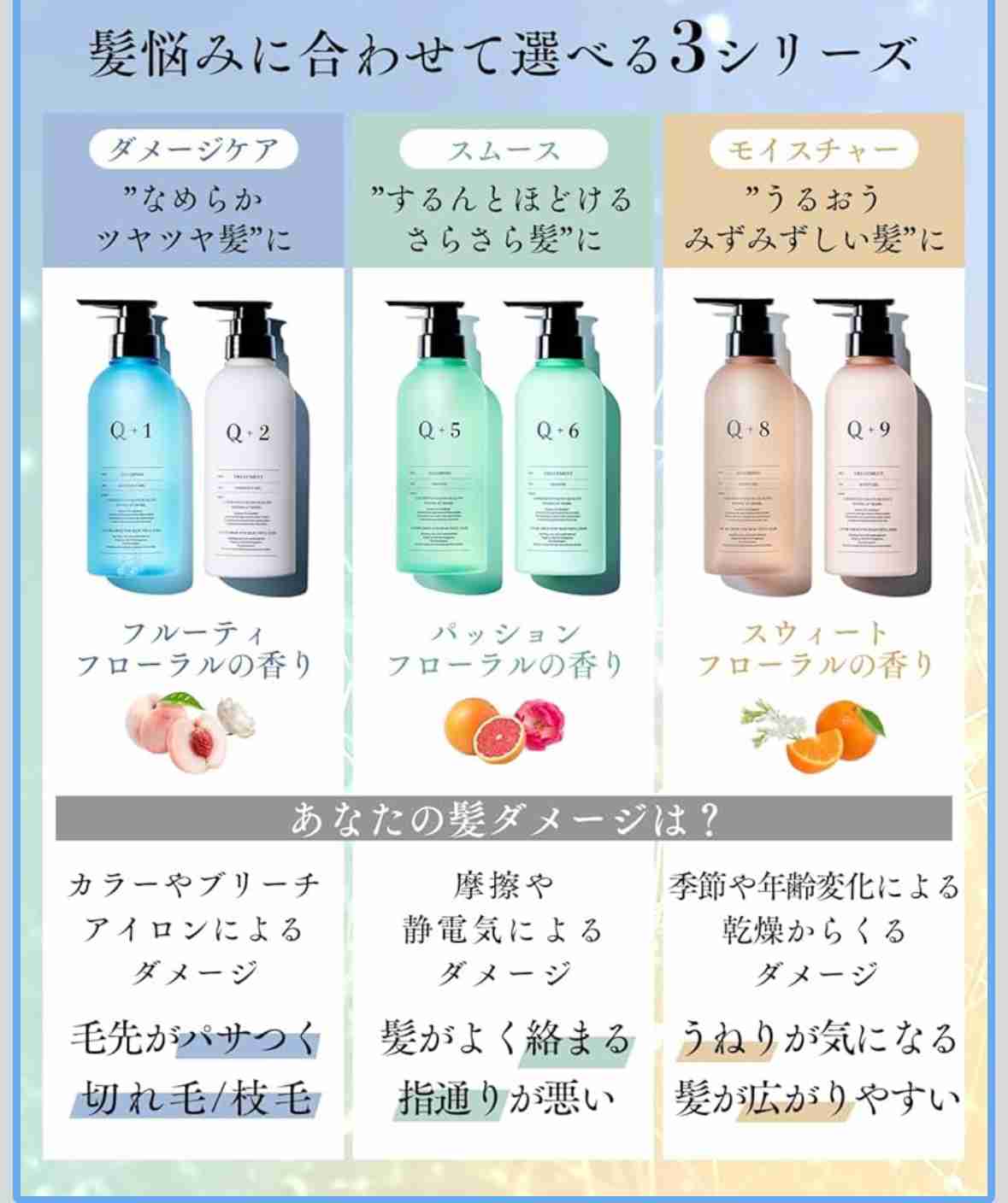 香りもいいし、使用感も好き。痒くならない。アウトバスのミルクトリートメントもいいよ+0